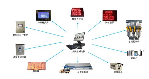 耐思袋裝水泥智能發(fā)貨控制系統(tǒng)由上位機(jī)中控系統(tǒng)、包裝機(jī)、裝車機(jī)、噴碼機(jī)、計(jì)數(shù)系統(tǒng)、自動擋包裝置、自動扳道裝置、PLC控制系統(tǒng)、裝車道刷卡終端、LED指示系統(tǒng)、聲光報(bào)警系統(tǒng)、視頻監(jiān)控系統(tǒng)、數(shù)據(jù)傳輸系統(tǒng)組成。