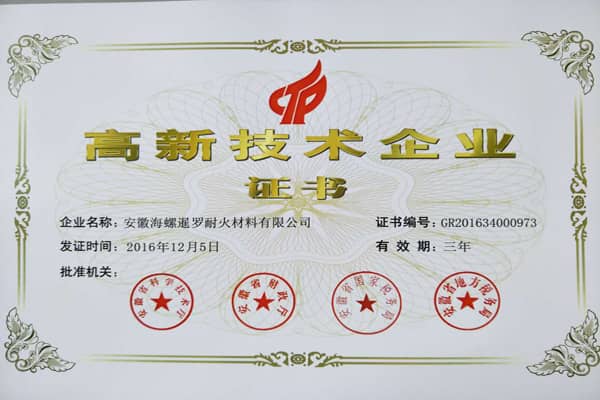 為積極爭(zhēng)取國(guó)家相關(guān)優(yōu)惠政策、實(shí)現(xiàn)公司效益最大化,進(jìn)一步提升企業(yè)的美譽(yù)度和市場(chǎng)競(jìng)爭(zhēng)力,并以高新技術(shù)企業(yè)的申報(bào)為契機(jī),進(jìn)一步推進(jìn)公司技術(shù)研發(fā)和管理創(chuàng)新工作、提升公司的綜合競(jìng)爭(zhēng)力,耐火材料公司積極開展高新技術(shù)企業(yè)申報(bào)工作,于2016年12月順利通過(guò)國(guó)家高新技術(shù)企業(yè)認(rèn)定,并于2017年元月取得高新技術(shù)企業(yè)證書,成為安徽省2016年第二批高新技術(shù)企業(yè),這是耐火材料發(fā)展史上的又一里程碑。