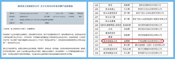 近日,陜西省人民政府辦公廳下發(fā)《關(guān)于公布2016年省名牌產(chǎn)品的通知》中,千陽(yáng)海螺水泥有限責(zé)任公司生產(chǎn)的“海螺”牌P.O42.5水泥再次榮獲“陜西省名牌產(chǎn)品”榮譽(yù)稱號(hào)。