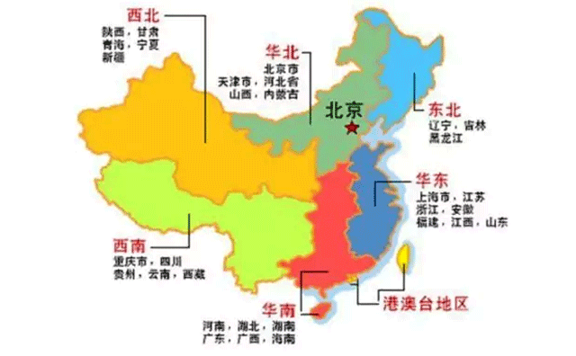 圖:六大區(qū)域劃分(港澳臺(tái)除外)