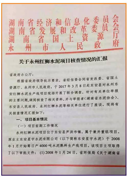 圖:關(guān)于永州紅獅水泥項(xiàng)目核查情況匯報(bào)