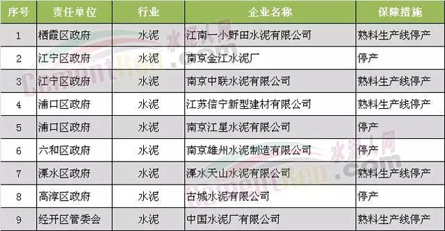 江蘇發(fā)展大會環(huán)境空氣質量保障重點管控水泥企業(yè)名單