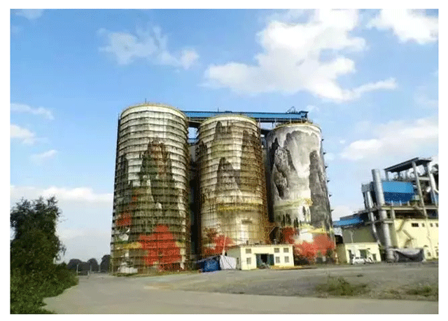 把國(guó)畫(huà)畫(huà)到水泥罐上,夠新鮮的了!這家水泥廠(chǎng)太有創(chuàng)意。據(jù)了解,這3個(gè)水泥罐高44米。國(guó)畫(huà)總面積4千多平米,這應(yīng)該是世界上最大的山水國(guó)畫(huà)了。每年都能吸引不少游客前來(lái)拍照!