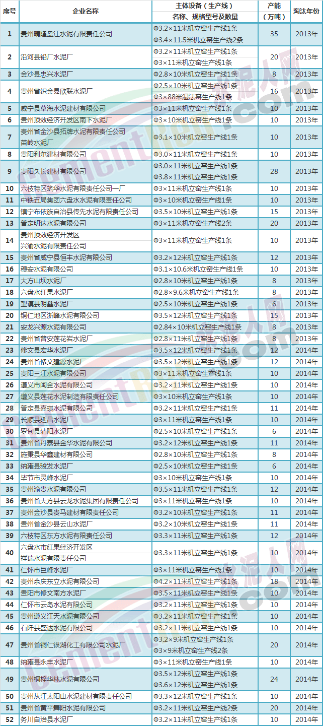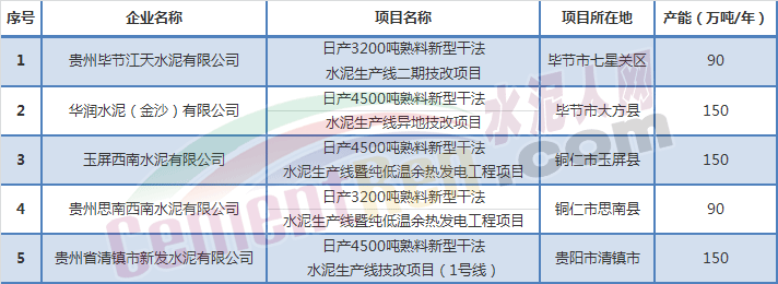 貴州省停止建設(shè)的水泥項(xiàng)目名單