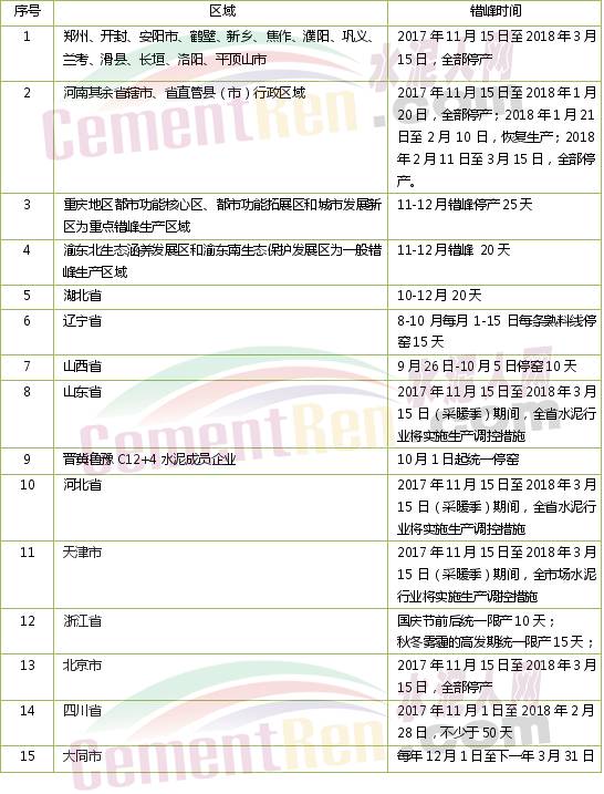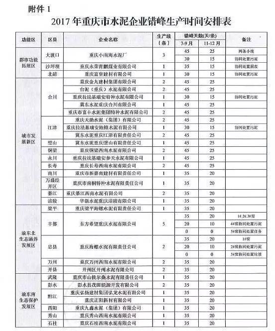重慶市水泥企業(yè)錯(cuò)峰時(shí)間安排
