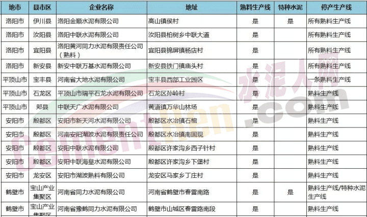 近日從當(dāng)?shù)叵嚓P(guān)部門獲悉,冬季停窯涉及的七十余家水泥企業(yè)包括熟料生產(chǎn)線外還包括多家特種水泥生產(chǎn)線。具體停產(chǎn)時(shí)間名單詳情如下:
