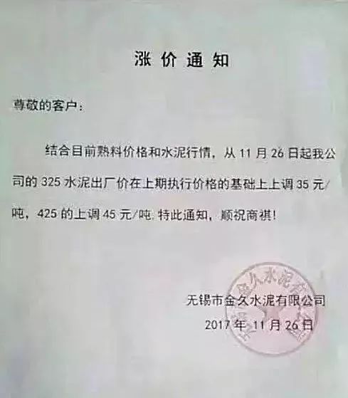 無(wú)錫金久水泥漲價(jià)函