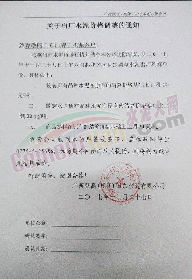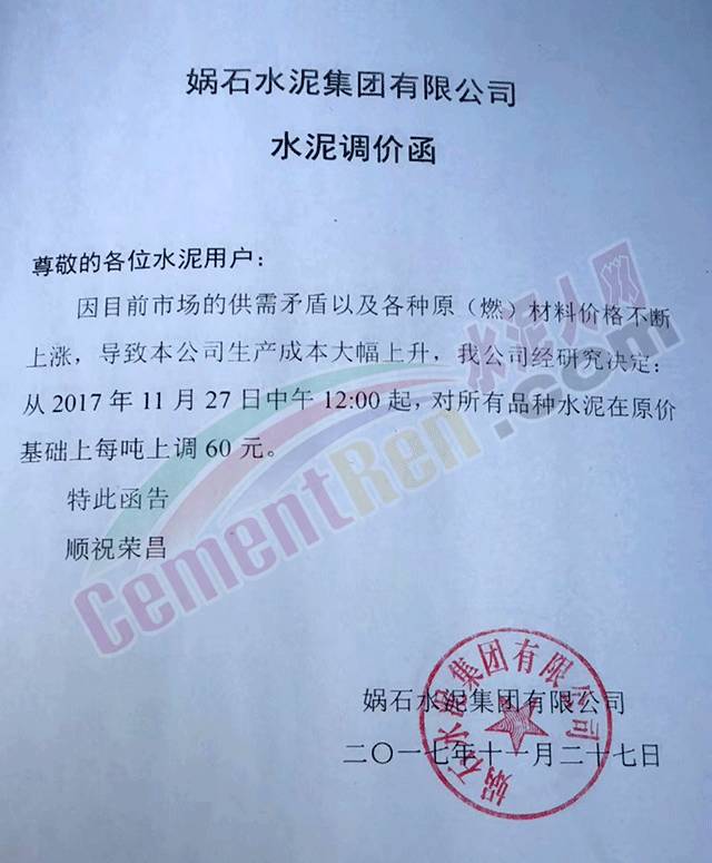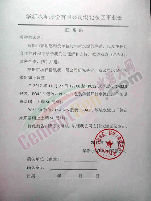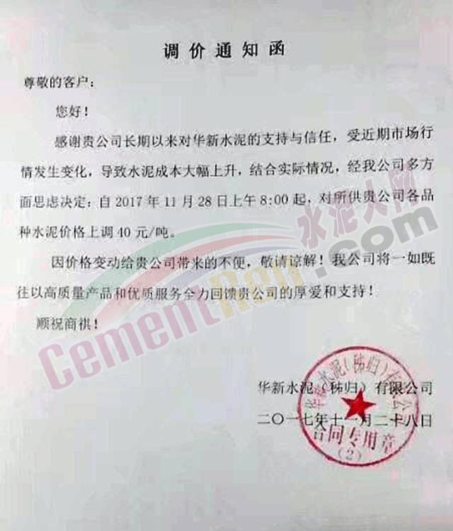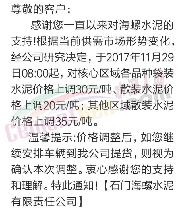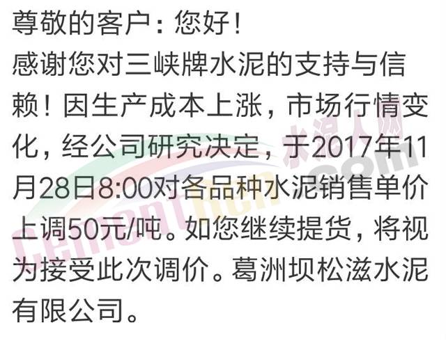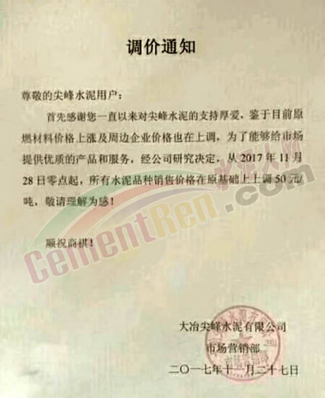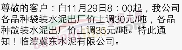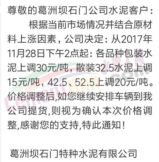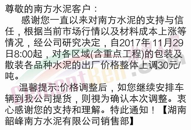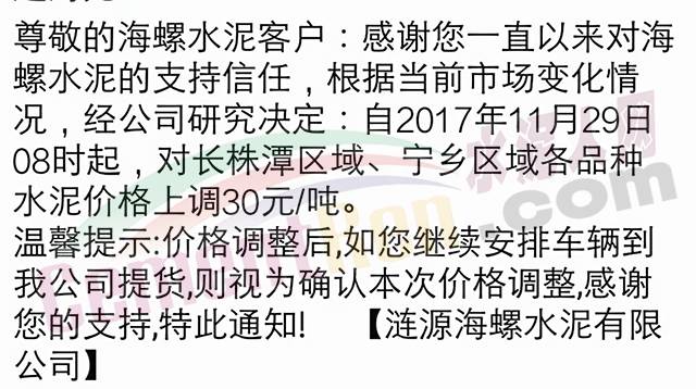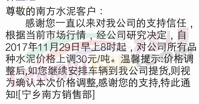 水泥人網(wǎng)29日消息:近兩日 ,南方水泥、海螺水泥、華新水泥、中材水泥、冀東水泥、葛洲壩水泥等22家企業(yè)集體發(fā)布漲價通知,湖南、湖北、廣西地區(qū)水泥行業(yè)開啟新一輪漲價。此前水泥人網(wǎng)公眾平臺曾發(fā)表各地水泥直逼500元/噸 水泥市場開啟“打劫”模式(點擊閱讀)一文,引來近十萬人的關(guān)注,而僅僅數(shù)日之后,各地水泥價格直逼600元/噸,距離600元/噸只差一張漲價函了。
