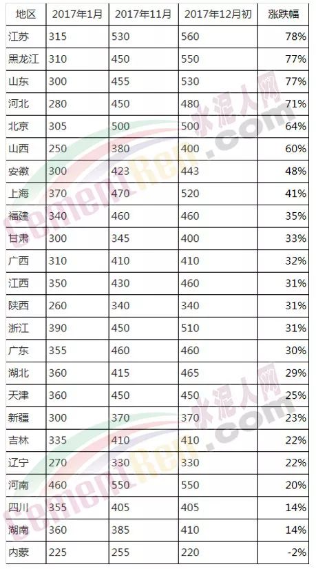 綜上所述,1-11月份的價(jià)格走勢(shì),總體為上漲趨勢(shì),12月份部分地區(qū)因下游需求不足,有小幅回落,但基本面仍處于高位運(yùn)行階段。部分區(qū)域銷售負(fù)責(zé)人稱:2017年價(jià)格基本定型,變動(dòng)不會(huì)太大,來年3月份錯(cuò)峰生產(chǎn)結(jié)束,可能會(huì)面臨一小波價(jià)格回調(diào),回調(diào)力度不會(huì)太大。
