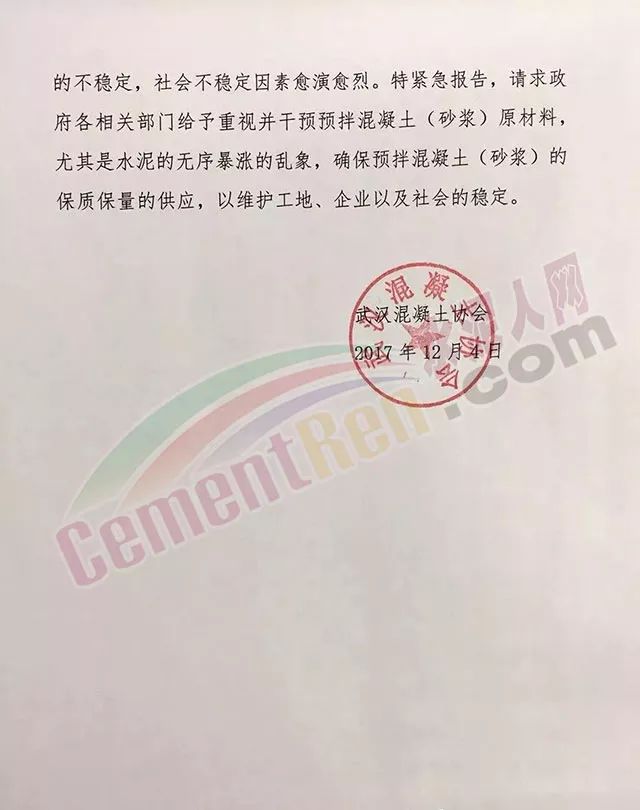 目前,部分預(yù)拌混凝土(砂漿)企業(yè)已經(jīng)停產(chǎn),部分建設(shè)項(xiàng)目已經(jīng)停工。停產(chǎn)、停工嚴(yán)重影響我市城市建設(shè)的推進(jìn)尤其是政策重點(diǎn)項(xiàng)目的進(jìn)程,造成了工程質(zhì)量的不穩(wěn)定,社會不穩(wěn)定因素愈演愈烈。特緊急報(bào)告,請求政府各相關(guān)部門給予重視并干預(yù)預(yù)拌混凝土(砂漿)原材料,尤其是水泥的無序暴漲的亂象,確保預(yù)拌混凝土(砂漿)的保質(zhì)保量的供應(yīng),以維護(hù)工地、企業(yè)以及社會的穩(wěn)定。