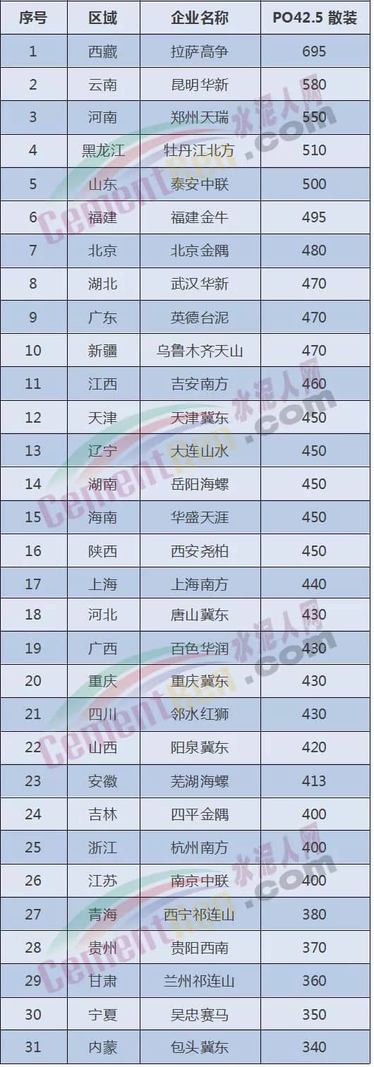 注:以上信息來源于水泥人網(wǎng)信息中心,如有差池,以實際報價為準!