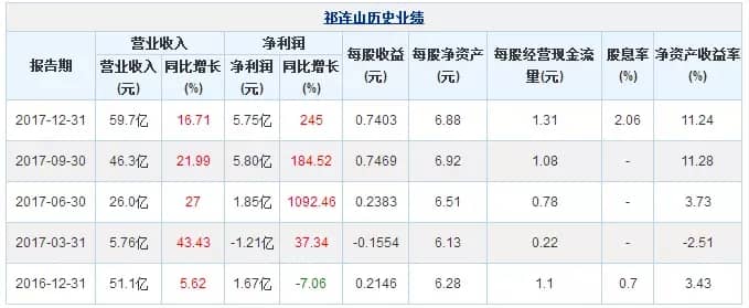 【水泥人網(wǎng)】祁連山3月22日最新公布的2017年年報顯示,其營業(yè)收入59.7億元,同比增長16.71%;歸屬于上市公司股東的凈利潤5.75億元,同比增長245%?;久抗墒找?.74元。公司最新分配方案為每10股派發(fā)股息人民幣2.30元,股息率2.06%。