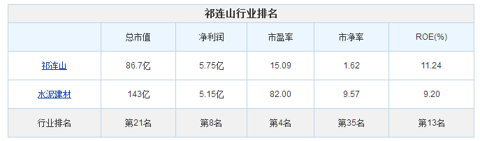公司屬水泥建材行業(yè),其凈利潤在本行業(yè)中排名第8名,其他指標在本行業(yè)中的位置如下表: