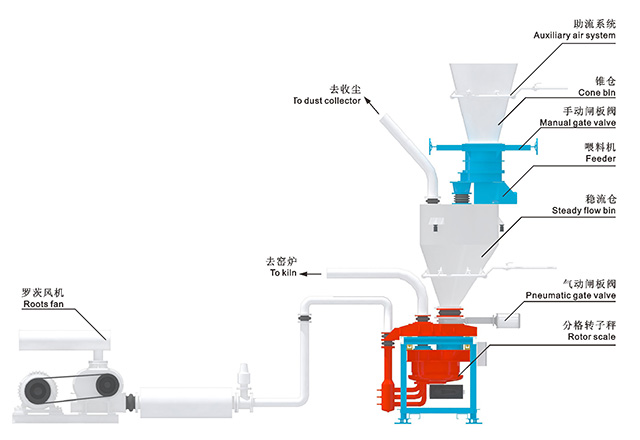 菲斯特形式轉(zhuǎn)子秤把傳統(tǒng)的煤粉定量喂煤、計量和鎖風(fēng)功能集成到一臺裝置中,專用于采用氣力輸送煤粉的定量喂煤。該系統(tǒng)噪音小、結(jié)構(gòu)緊湊、維護方便,已廣泛應(yīng)用于全球水泥行業(yè)的定量喂煤。