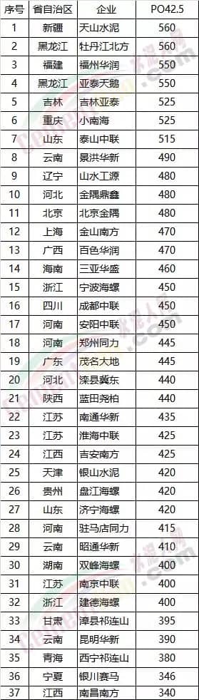 從以上數(shù)據(jù)看出近期新疆地區(qū)的水泥價格有追趕西藏的勢頭,52.5散裝水泥的報價為760元/噸,52.5袋裝水泥出廠價780元/噸,接近西藏地區(qū)??梢灶A(yù)見的是未來新疆地區(qū)的水泥價格將與西藏地區(qū)比肩。新疆地區(qū)是國內(nèi)第一個全面取消32.5水泥的區(qū)域,這或者也是水泥價格較高的原因之一。