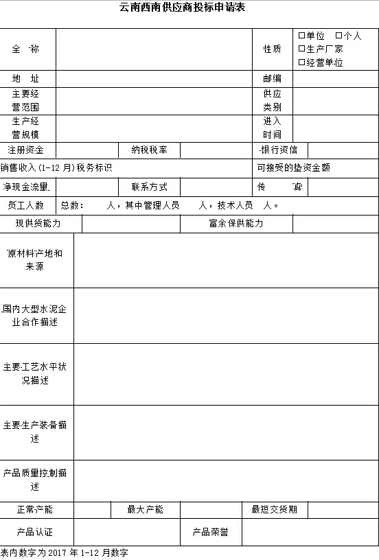 附件:云南西南供應(yīng)商投標(biāo)申請表