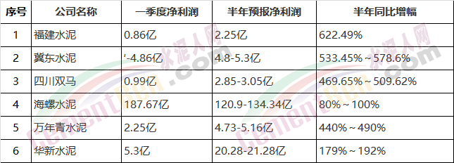 【水泥人網】近期已經有多家水泥企業(yè)上市公司發(fā)布了半年業(yè)績預告,且都公告大賺。