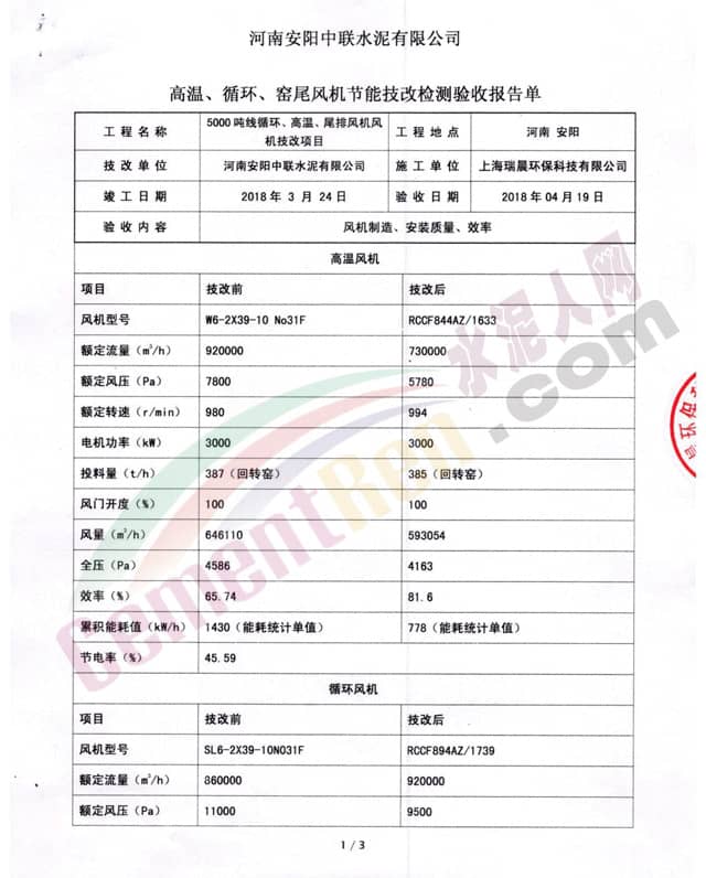 隨著水泥行業(yè)競爭越來越激烈,為降低生產(chǎn)成本,中聯(lián)水泥河南區(qū)域公司與上海瑞晨深度合作,開展熟料線五大風(fēng)機節(jié)能技改工作。通過提升風(fēng)機自身性能,整改系統(tǒng)中存在的不利因素,量身定制高效節(jié)能風(fēng)機,提升風(fēng)機運行效率,減少無效耗能,達到最佳節(jié)能效果。