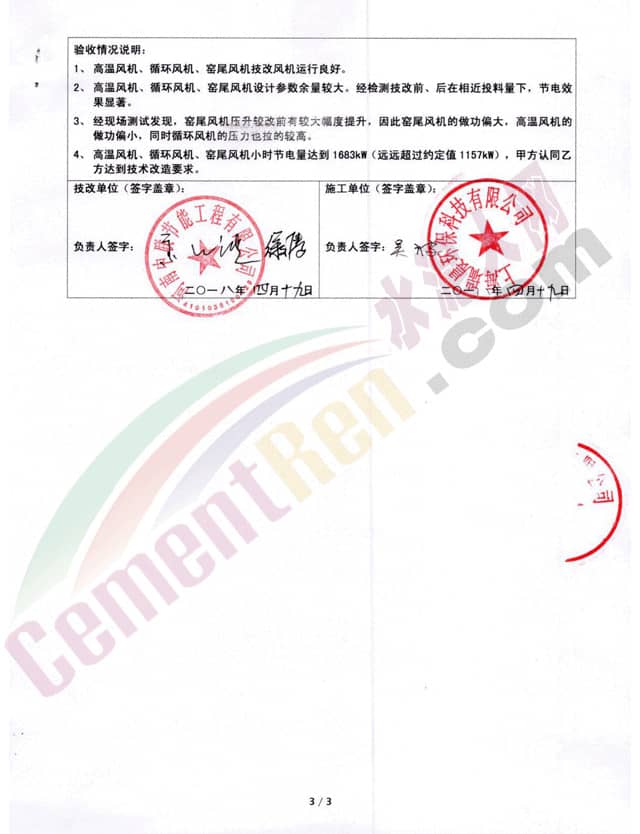 上海瑞晨水泥行業(yè)風(fēng)機節(jié)能改造業(yè)績(部分)