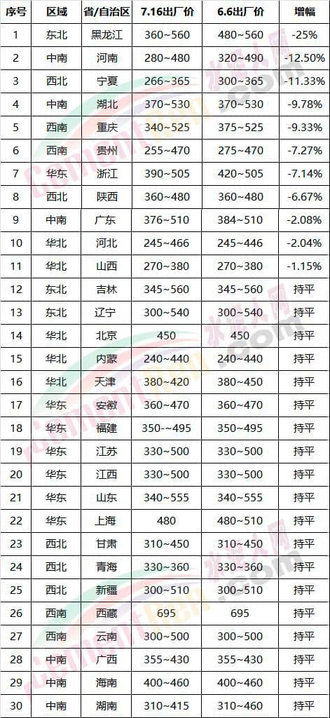 三北地區(qū),東北地區(qū),相對于其他地區(qū),旺季來得晚一些。7-9月屬于東北三省冬季較寒冷地區(qū)的旺季; 西北地區(qū),因近期多雨,加之部分新建生產線影響,出貨量較前期有所下降;華北地區(qū),因區(qū)域重點項目雄安新區(qū)等正在加緊建設中,水泥銷量與前期基本持平。