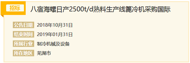 招標(biāo)項(xiàng)目名稱(chēng):八宿海螺日產(chǎn)2500t/d熟料生產(chǎn)線篦冷機(jī)采購(gòu)