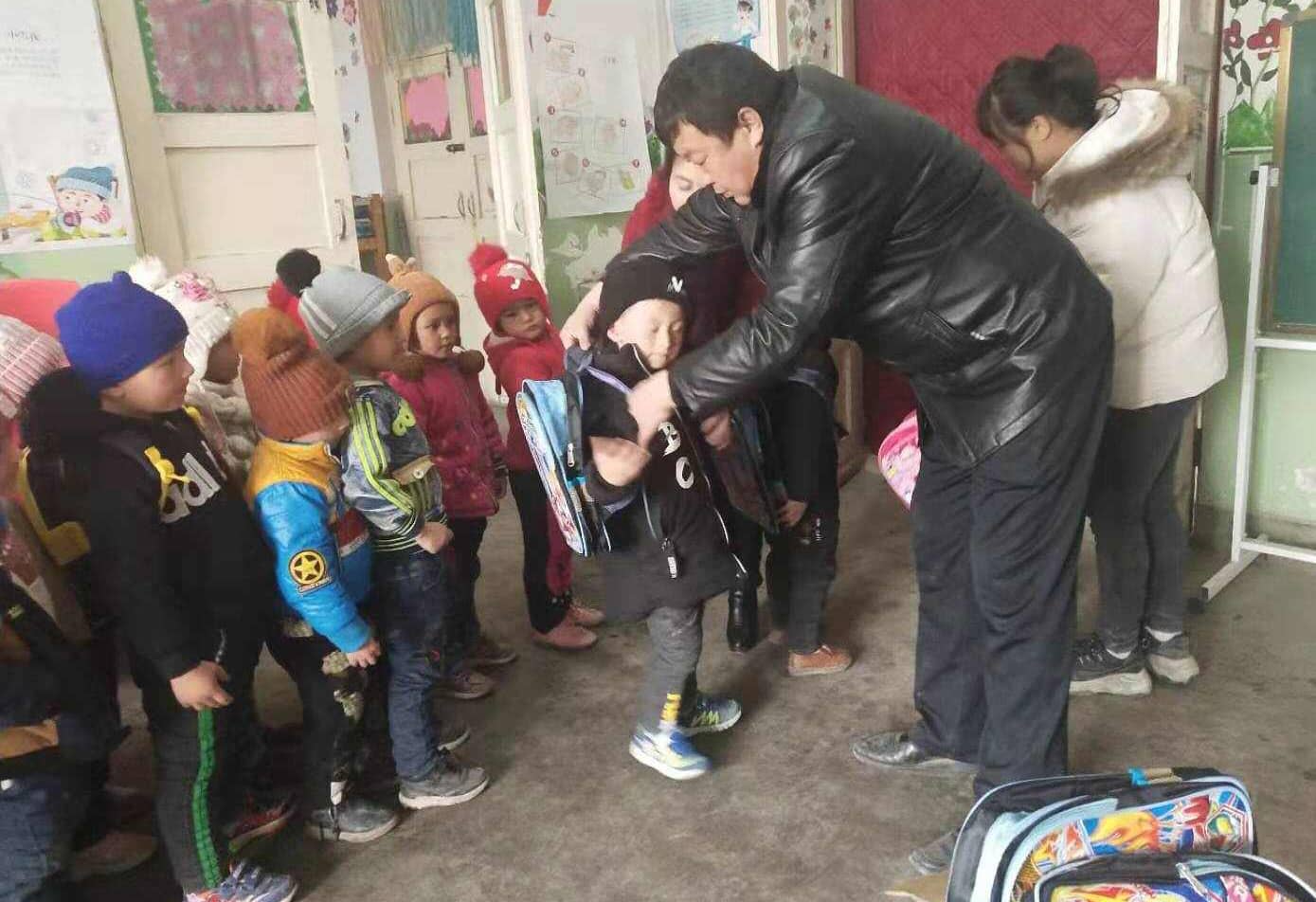 一份耕耘,一份收獲。去年底,烏帕爾中心幼兒園對(duì)全鎮(zhèn)各村幼兒園進(jìn)行了期終測(cè)試,十二村幼兒園小二班順利通過(guò)了測(cè)試,且部份小朋友成績(jī)優(yōu)秀,受到了中心幼兒園的表?yè)P(yáng)。于是在今年放寒假時(shí),吳志強(qiáng)自費(fèi)購(gòu)買(mǎi)了三十二個(gè)書(shū)包,兌現(xiàn)了對(duì)小朋友們的承諾。