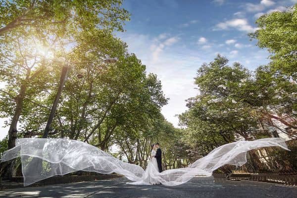 一對新人在寧國水泥廠生活區(qū)拍攝婚紗照