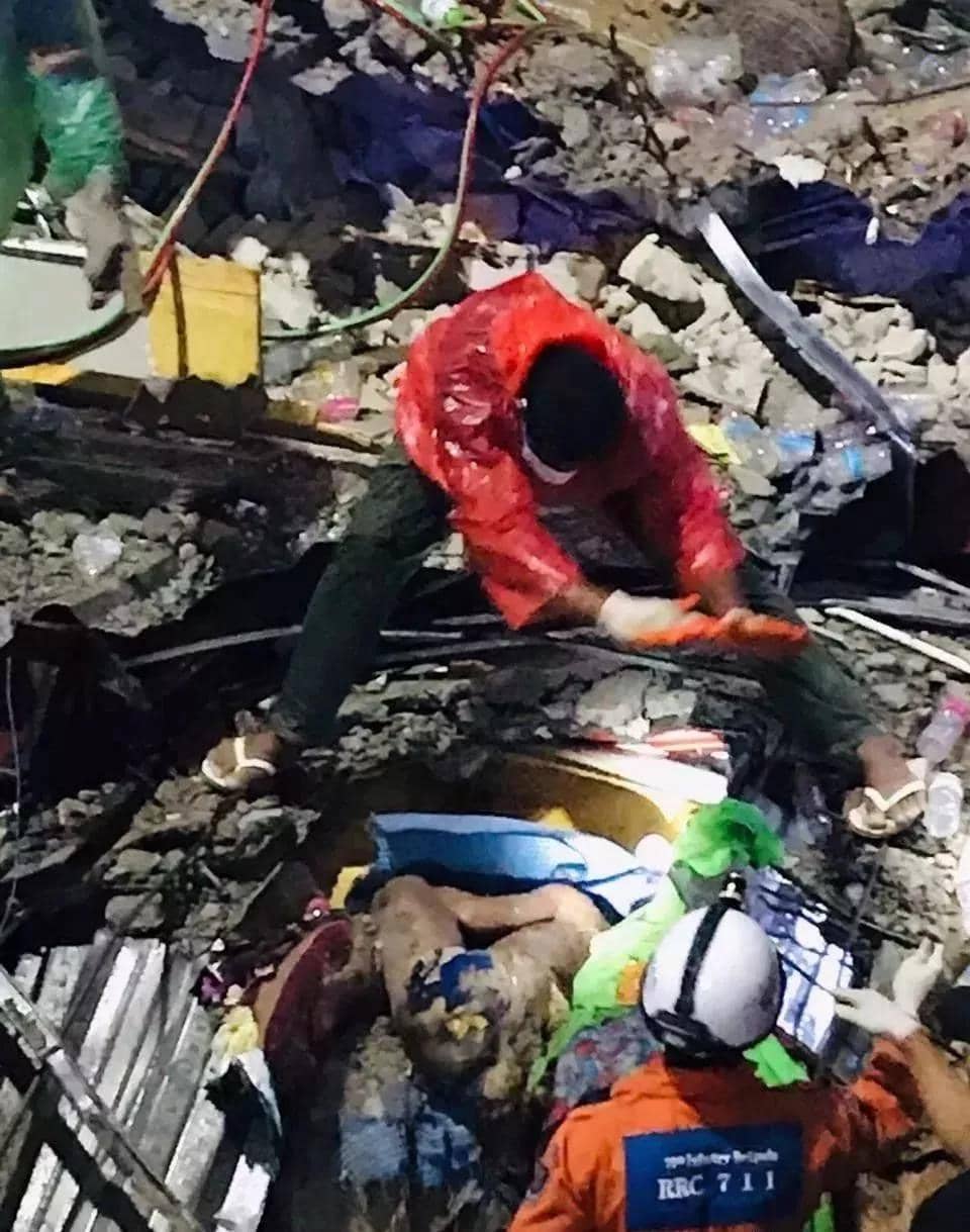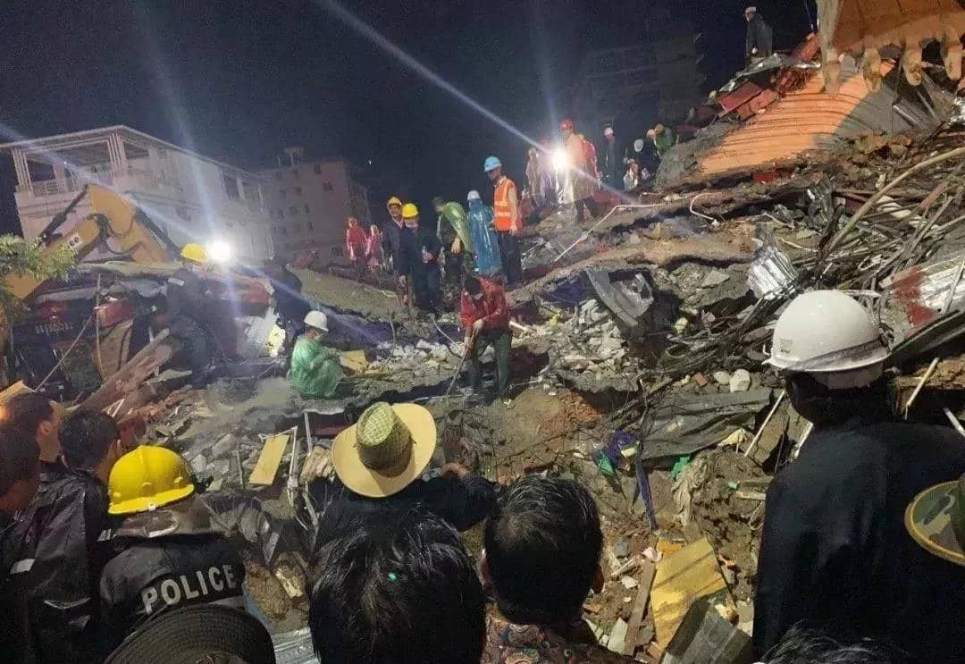 ▲西哈努克市垮塌建筑救援現(xiàn)場