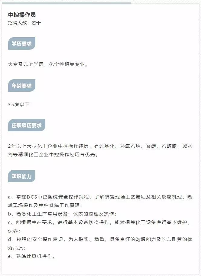 要求:性別不限,??埔陨蠈W(xué)歷。安全環(huán)保類專業(yè)、機(jī)械類專業(yè)、電氣類專業(yè)、無(wú)機(jī)非金屬材料專業(yè)、管理類專業(yè)均可,能吃苦耐勞。有工作經(jīng)驗(yàn)優(yōu)先,年齡18-35歲。工資待遇:3000- 6000元/月。