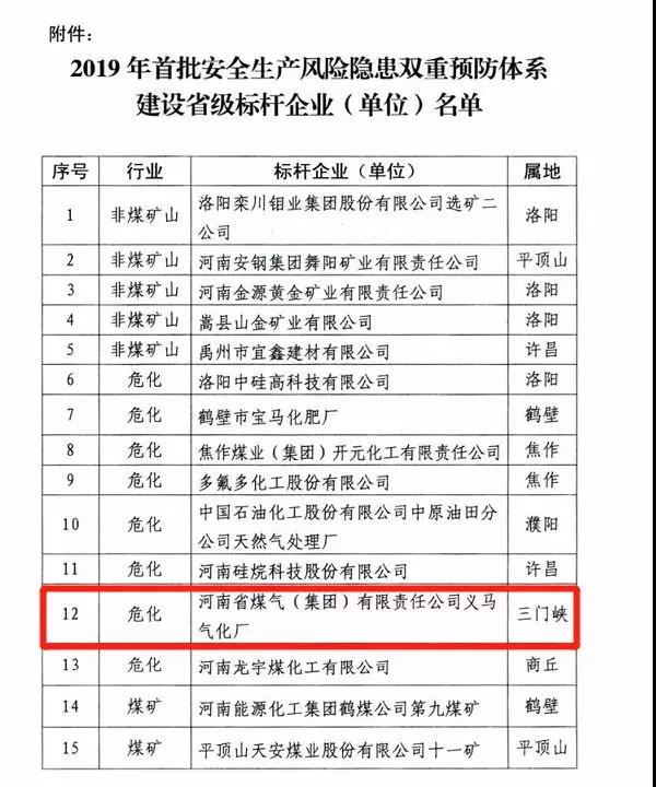 讓人意想不到的是,這次爆炸的企業(yè)在十天前,剛剛獲得安全標桿企業(yè)---河南省煤氣集團三門峽義馬氣化廠還被列為河南省“2019年首批安全生產(chǎn)風險隱患雙重預(yù)防體系建設(shè)省級標桿企業(yè)”。