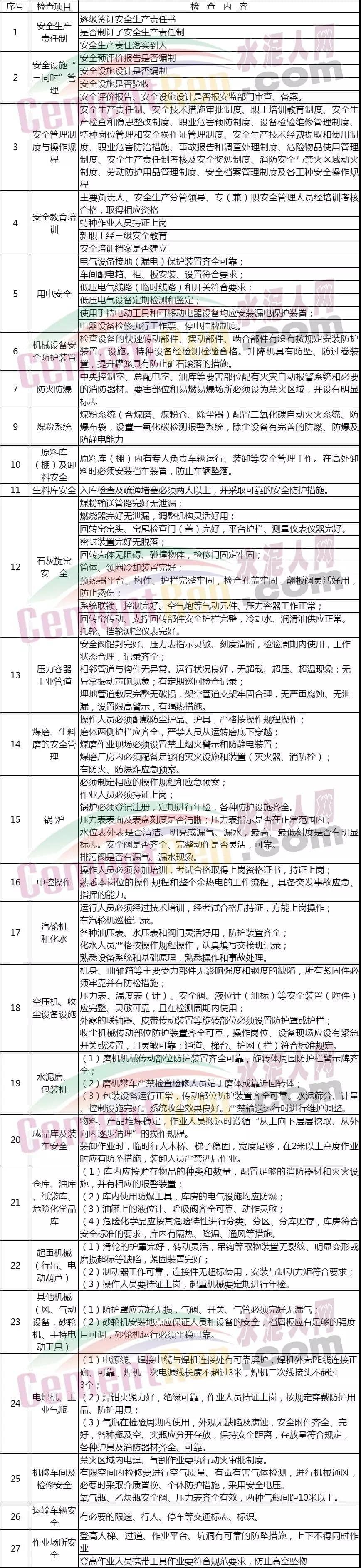此次安全事故發(fā)生之后,或?qū)⒁鹦乱惠喨珖踩髾z查,?;⑺?、鋼鐵等領(lǐng)域依然是檢查重點領(lǐng)域。下面我們一起來了解一下水泥企業(yè)安全檢查查什么?