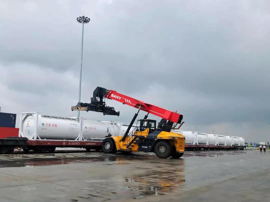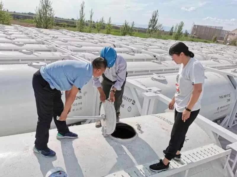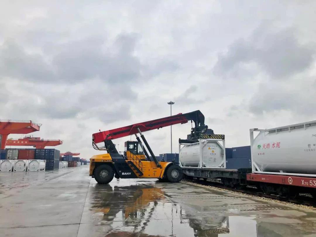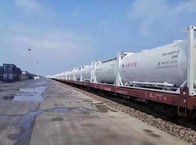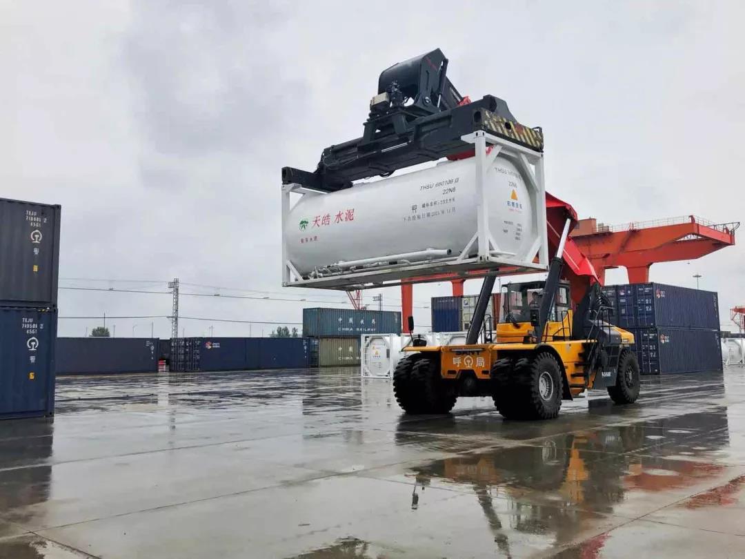 400個(gè)裝運(yùn)散裝水泥的定制罐式集裝箱陸續(xù)到達(dá)廠區(qū),未來每日將有100個(gè)罐式集裝箱發(fā)往北京、河南、河北等地