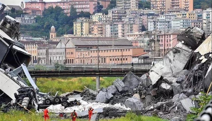 據(jù)報(bào)道,2018年8月14日,意大利熱那亞莫蘭迪公路橋突然垮塌,事故造成43人死亡,多人受傷。事件造成大橋周圍600多名居民被迫撤離,熱那亞和意大利西北部地區(qū)及其通往法國的交通網(wǎng)絡(luò)受到嚴(yán)重影響。