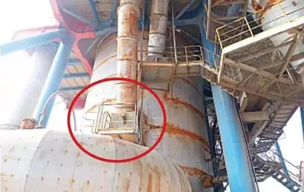 4 、水泥廠預(yù)熱器系統(tǒng)下料管清堵孔處設(shè)置了平臺,且直梯進入,平臺狹窄無逃生通道。若出現(xiàn)熱物料異常噴出,作業(yè)人員無法逃離,容易造成熱物料的高溫灼燙傷害。