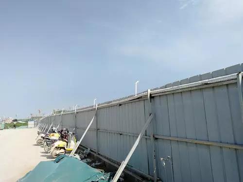 當天上午,執(zhí)法人員首選來到鄭東新區(qū)金光路辦事處柳園口村的鄭東新區(qū)金光集體土地租賃房項目工地進行檢查,現場發(fā)現該場區(qū)北側圍擋約200米無防溢基座,工地內一臺非道路移動機械不合格。