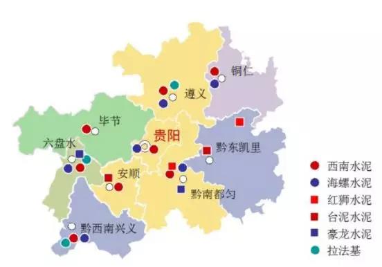 貴州地處西南區(qū)域同云南、貴州、湖南、廣西等接壤,從產(chǎn)能分布情況來(lái)看,貴州區(qū)域以西南水泥、海螺水泥為主導(dǎo),另有紅獅水泥、臺(tái)泥水泥、華潤(rùn)水泥、豪龍水泥、拉法基等幾大國(guó)內(nèi)水泥集團(tuán)企業(yè)產(chǎn)能分布。