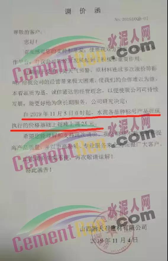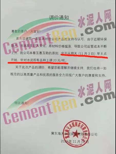 11月4日,安徽銅陵地區(qū)水泥行情上漲20元/噸,現(xiàn)主流品牌P.O42.5散裝水泥價格在490-500元/噸。銷量小幅提升,主要因庫存偏低,水泥行情偏強運行?! ?1月4日,湖北荊州、荊門地區(qū)水泥價格上調(diào)20-30元/噸,下游區(qū)域水泥價格大幅上調(diào),本地水泥價格隨之上調(diào),目前正逐步落實中,落實情況還有待跟蹤?! ?1月2日,冀東海天水泥聞喜有限公司發(fā)布調(diào)價通知稱:由于近期環(huán)保限產(chǎn),市場發(fā)生巨大變化,原材料價格猛漲,導(dǎo)致公司運營成本不斷上升,公司本著互惠互助原則,從11月3日早8點開始,所有品種水泥上調(diào)20元/噸。