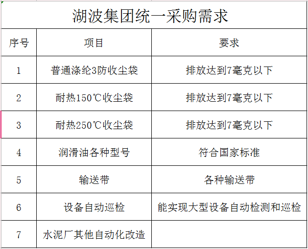 湖波集團(tuán)統(tǒng)一采購(gòu)需求