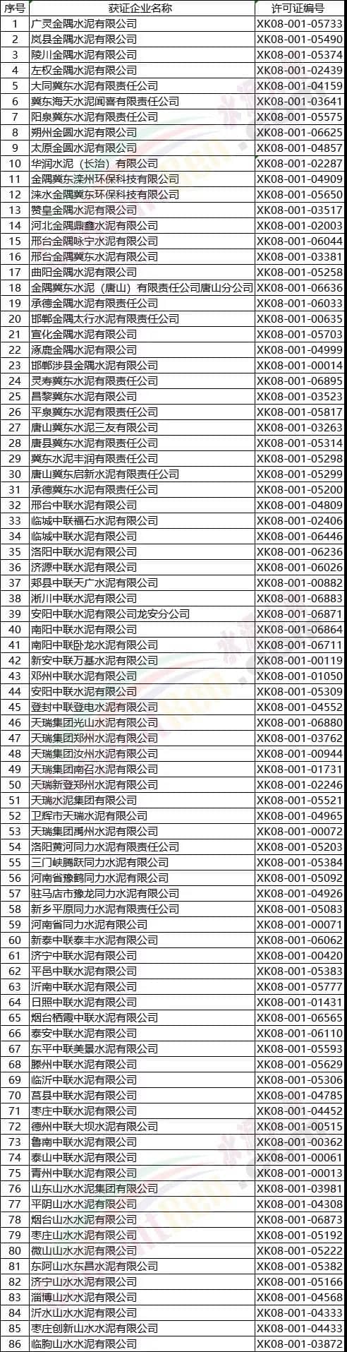 來源:市場監(jiān)管總局生產許可證辦公室浙江省部分熟料生產企業(yè)名單