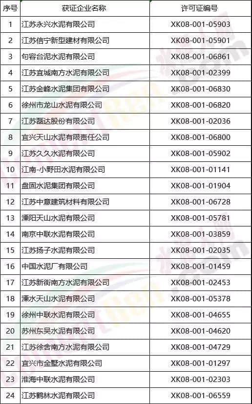 江蘇省部分水泥熟料生產企業(yè)名單