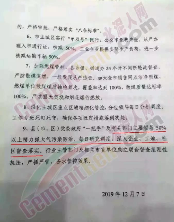 會(huì)議強(qiáng)調(diào),2019年大氣污染防治強(qiáng)化攻堅(jiān)沖刺期間,將圍繞工業(yè)企業(yè)監(jiān)管執(zhí)法、嚴(yán)控重型車、嚴(yán)查非道路移動(dòng)機(jī)械等方面,全力做好重污染天氣管控。一是嚴(yán)查豁免項(xiàng)目,對(duì)已評(píng)為標(biāo)桿攪拌站的,或享受豁免政策的,發(fā)現(xiàn)存在違法違規(guī)行為,一律從嚴(yán)處罰,并根據(jù)情形責(zé)令降級(jí)或退出豁免名單。二是嚴(yán)查工業(yè)企業(yè),對(duì)全市7774家企業(yè)進(jìn)行逐家篩查,除今年納入紅色預(yù)警豁免的1438家重點(diǎn)企業(yè)外,對(duì)沒有完成深度治理或存在超標(biāo)排放行為的,嚴(yán)格實(shí)施停產(chǎn)整治。三是嚴(yán)控重型車輛。大宗貨物運(yùn)輸企業(yè)門禁系統(tǒng)按時(shí)全部安裝到位,聯(lián)網(wǎng)進(jìn)行監(jiān)管;應(yīng)急管控期間,禁止使用國Ⅳ及以下重型運(yùn)輸車輛;在重度污染時(shí),除民生保障外,停止大宗貨物運(yùn)輸。四是嚴(yán)查非道路移動(dòng)機(jī)械。對(duì)全市在用非道路移動(dòng)機(jī)械進(jìn)行拉網(wǎng)式排查,對(duì)使用未掛牌、不達(dá)標(biāo)非道路移動(dòng)機(jī)械的,一經(jīng)發(fā)現(xiàn),嚴(yán)查重處。從目前各地發(fā)布的重污染天氣預(yù)警響應(yīng)以及相關(guān)政府部門的年底沖刺計(jì)劃來看,國內(nèi)的水泥、商混行業(yè)又將迎來新一輪停產(chǎn)潮,而且一潮高于一潮,在這種情況下,水泥、混凝土、砂石供應(yīng)趨緊,價(jià)格將會(huì)繼續(xù)狂舞。
