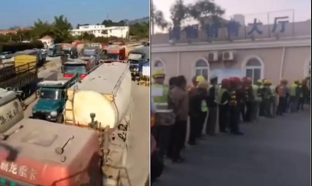 圖:海螺水泥廠區(qū)外車排隊,廠區(qū)內(nèi)人排隊
