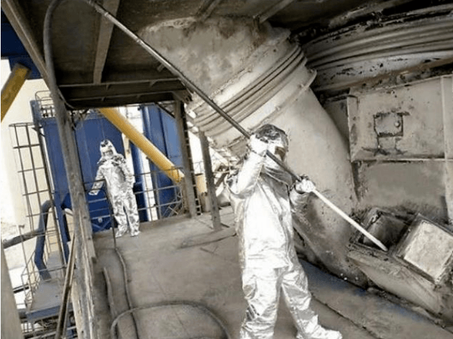 1)預(yù)熱器結(jié)皮清理預(yù)熱器應(yīng)兩人以上進(jìn)行作業(yè),提前穿戴隔熱防護(hù)服,防火頭盔,耐高溫手套。