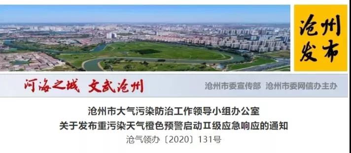 滄州市11月9日8時發(fā)布重污染天氣橙色預警,啟動Ⅱ級應急響應