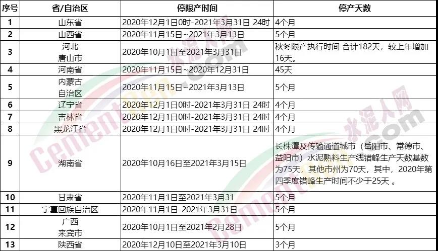 1700多家水泥廠停產(chǎn)時間表發(fā)布!