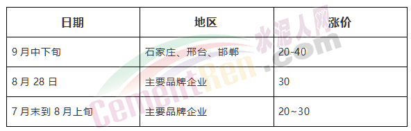 山東區(qū)域主要品牌企業(yè)近日通知上調(diào)水泥價格30~50元/噸,自下半年以來已經(jīng)四次上調(diào)水泥價格,累計上調(diào)80~160元/噸。