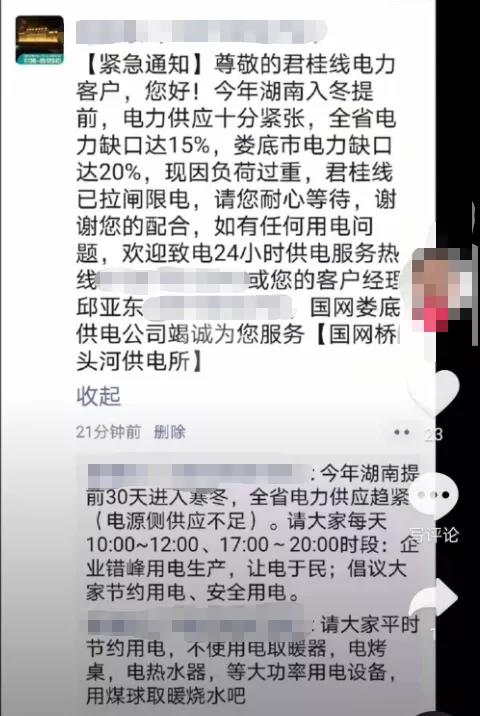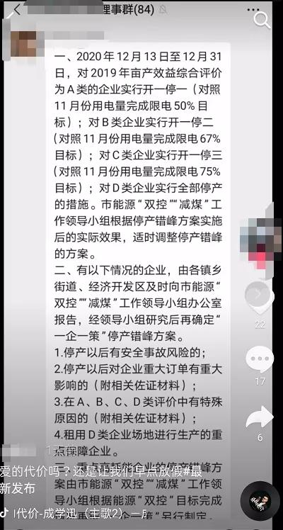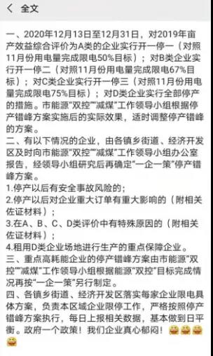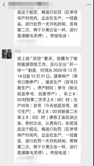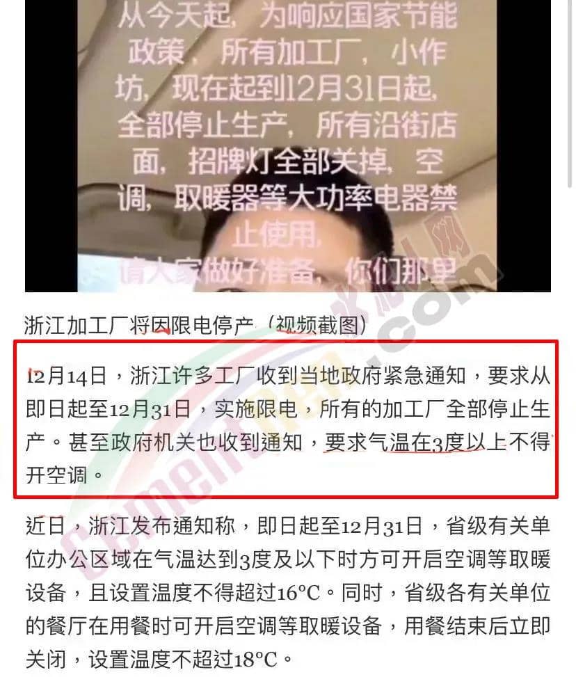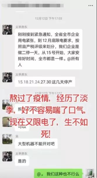 除以上地區(qū)外,湖南懷化、永州等地也已于12月5日起正式啟動有序用電。網(wǎng)絡(luò)上也有不少工廠“曬”出了現(xiàn)狀并表示,確實已經(jīng)開始限電和停限產(chǎn)了。