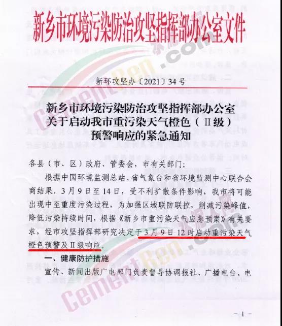新鄉(xiāng)市環(huán)境污染防治攻堅指揮部辦公室發(fā)布《關于啟動新鄉(xiāng)市重污染天氣橙色(Ⅱ級)預警響應的緊急通知》稱于3月9日12時啟動重污染天氣橙色預警及Ⅱ級響應。