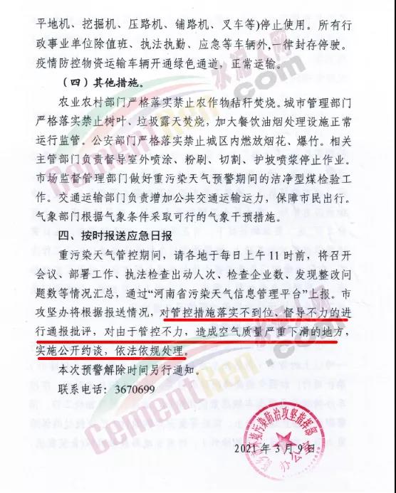 邯鄲市重污染天氣應急指揮部決定3月8日16時啟動Ⅱ級應急響應,在確保安全生產、疫情防控和民生保障的前提下,全市域嚴格按照應急減排有關要求落實各項應急減排措施。解除時間另行通知。工業(yè)企業(yè)合理調控生產計劃,在確保安全生產、疫情防控和民生保障的前提下,按照《邯鄲市2020-2021年重污染天氣應急減排工業(yè)源清單》橙色預警(Ⅱ級)差異化減排措施執(zhí)行到位?;痣娖髽I(yè)加大脫硫脫硝劑用量,最大限度減少污染物排放。市政府對工業(yè)企業(yè)有相關管控要求的,結合預警通知要求從嚴執(zhí)行。