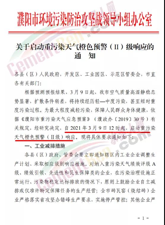 濮陽市環(huán)境污染防治攻堅戰(zhàn)領導小組辦公室發(fā)布《關于啟動重污染天氣橙色預警(Ⅱ)級響應的通知》自2021年3月9日12時起,啟動重污染天氣橙色預警(Ⅱ級)響應。